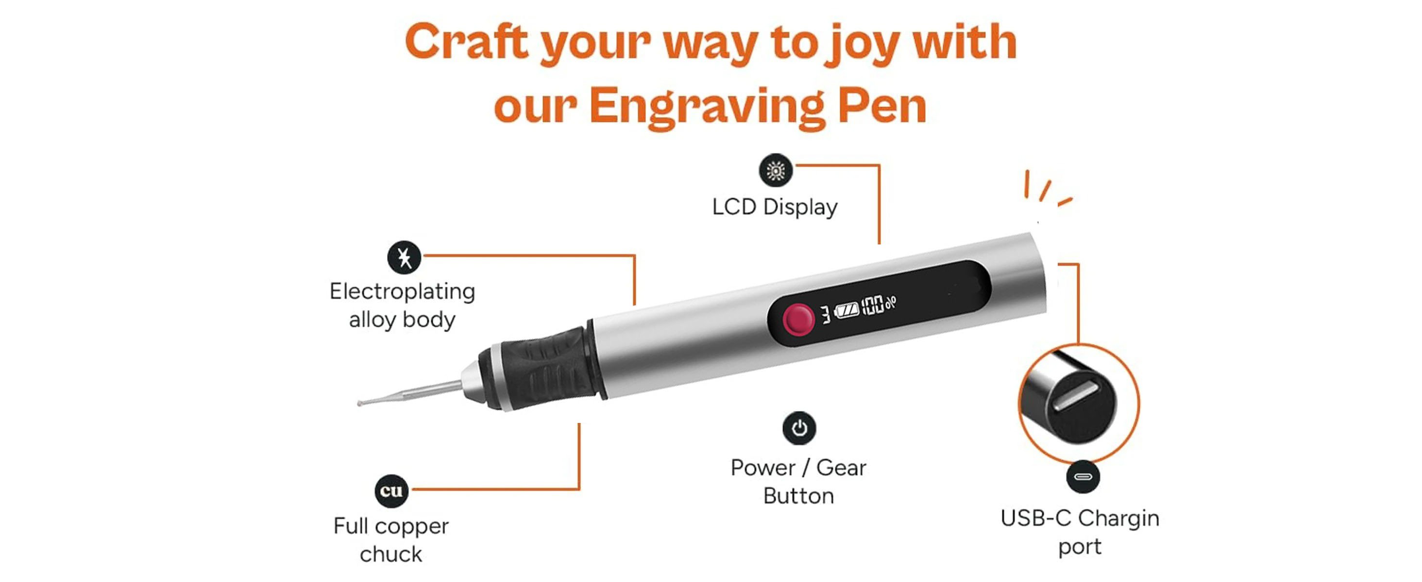 Equipped with USB-C fast charging (cable included) – power up in just 1.5 hours and use for 4+ hours straight. Cordless design means no tangled wires holding you back – engrave at your workbench, on a camping trip, or at a craft fair. The built-in battery indicator lets you know when it’s time to recharge, so you never miss a creative moment.